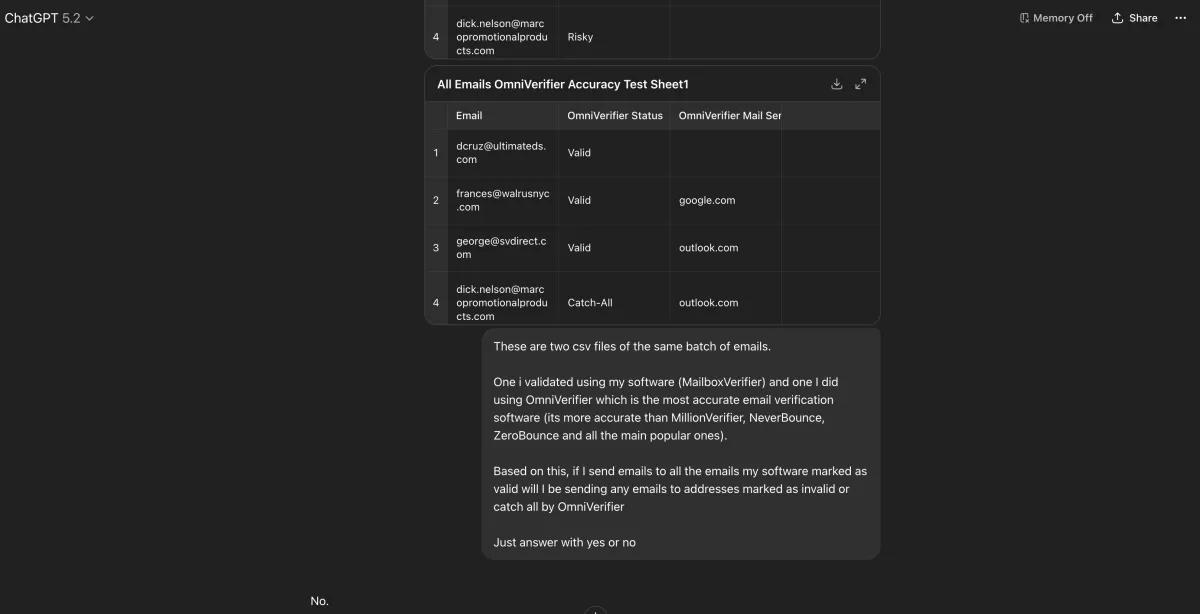 The best ROI you'll get is using us for validating a large list and validating the risky emails via another platform like CSVGO or OmniVerifier